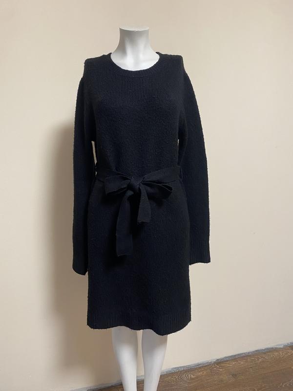 В’язана сукня, зимова сукня з поясом, в'язана чорна сукня з поясом, сукня тепла з поясом