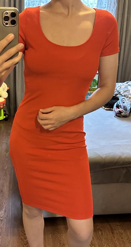 Заміри Довжина 95 см Напівохват у грудях 44 см У талії 34 см По низу 41 У стегнах 40 см Плюс тканина тягнеться !!!! На мої параметри 90/62/98 сіла класно, можна ще на більші Нова, Сток Класний помаранчевий колір Довжина міді