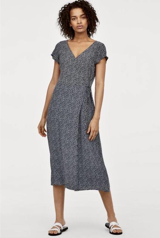 Сукня міді на підкладці ( в спідниці) зі 100% віскози, в ідеальному стані, без дефектів. Довжина 117 см, Довжина до талії 40,5 см, Ног. 45 см, Нот. 32-35 см, Нос. 49 см.