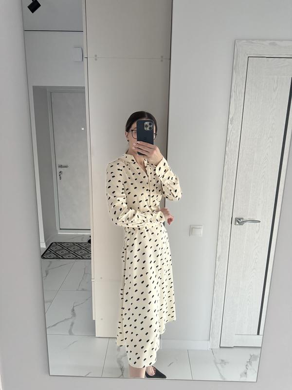 Нарядне плаття, з поясом. Рукав можна загортати. Збоку потаємний замочок. На останньому фото видко дефект-невеличка затяжка, яку при носці взагалі непомітно.