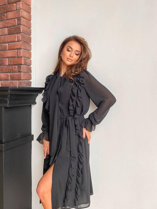 ▫️ Материал:шифон ▫️ Цвет: чёрный ▫️ Размеры: S, M ▫️ Длина изделия: 114см ▫️ Длина рукава: 63см ▫️ Параметры модели: 89-64-96 ▫️ Рост модели: 177 см ▫️ На модели размер: S ▫️ Розничная цена: 1159 грн.