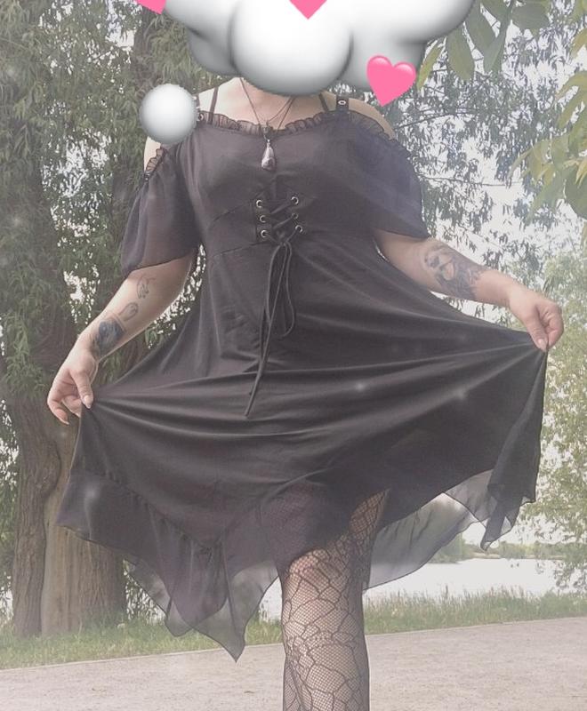 Шифон + трикотаж, без подкладки Груди 110, талія 94 Довжина 120,регулюється Одягала декілька разів, стчн ідеальний