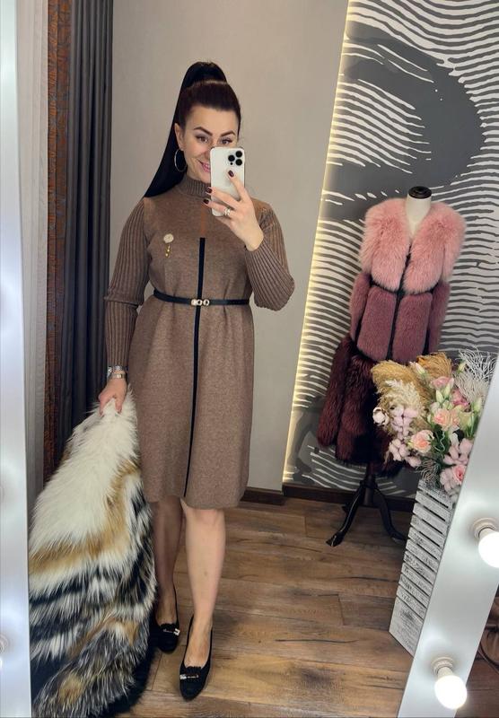 Удивительно по своей красоте, талантливой дизайнерской идее и качеству, платье свободного кроя с аккуратным воротником стойка, длинными рукавами с продольным узором, с первой минуты попадает в наши сердца и гардеробы, оно выполнено из теплого и плотного трикотажа машинной вязки, украшена эффектной разноцветной линией на передней части платья и нежной брошью, которую можно снять размер единственный 44-46 длина 95 см, объем груди по изделию 102 см тянется до 112 см, объем бедер по изделию 112 см тянется до 120 см, длина рукава от шеи 70 см пояс + 100 грн код 0642-5 цена 1300 грн
