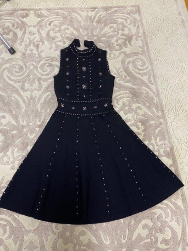 Класне плаття в стані нового, та один раз стало в нагоді, розмір 1 вказано, тканина стрейчева, важка, як бандажна. Довжина - 92,5см, пог - 37см, тягнеться до 50см, пот - 30см, до 40см тягнеться, поб - 52см. Об'єм подолу 2 метри.