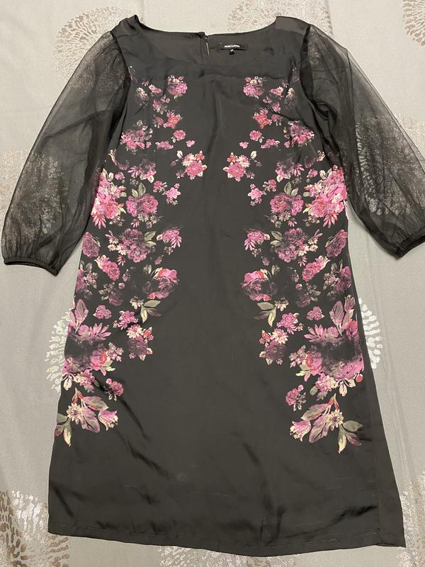 гарне плаття,збоку є замочок,по тканині 100 процентів поліестер,з вигляду як атласне,рукави фатінові четвертні
