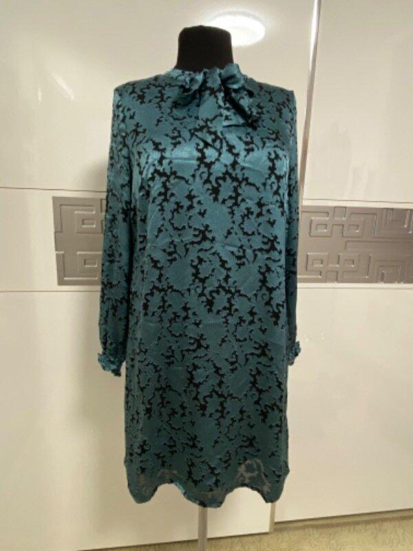 Чудове плаття зелено - бірюзового кольору, демонстровано на манекені 52 розміру, розмір 44 німецький вказано. Довжина - 93см, плечі - 42см,рукав від плеча - 64см, пог - 57см, пот - 57см, поб - 61см.