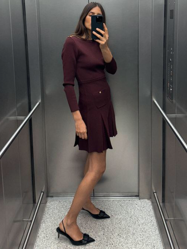 Однотонна трикотажна сукня з круглим коміром, довгими рукавами та ґудзиками на плечах. Накладні кишені спереду з золотистими ґудзиками, складки внизу. Представлено в размере XL Новое с бирками и запасной пуговицей Размер XL🥭 Длина 86 см Бюст 46 см В районе талии 47 см Бедра 55 см Плечи 38 см Рукав 60 см
