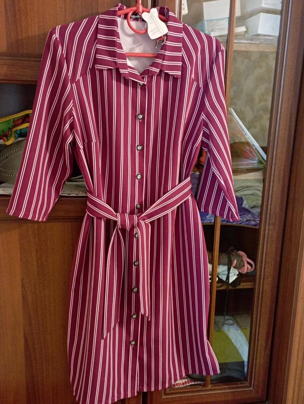 Сукня рубашка 48 розмір, на пуговках. Напівобхват грудей 50 (до 52 см максимум) , бедра-до 55 см, довжина - 96 см.