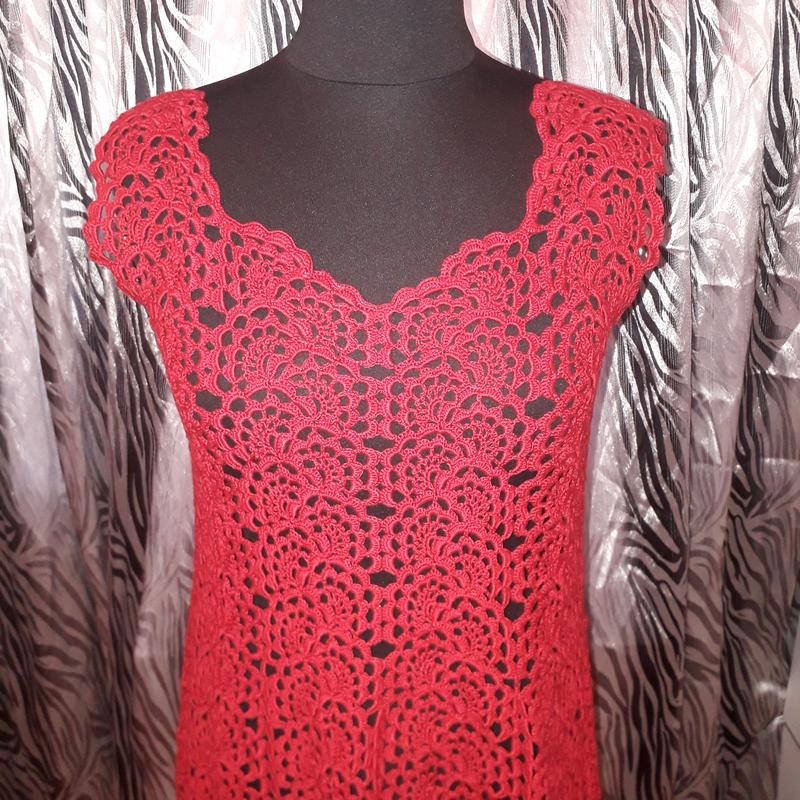 Вʼязане гачком плаття кольору марсала. Розмір: 48-52 Гарне літнє плаття підходить як для повсякденності, так і для святкової події