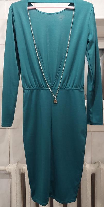 Сукня нова, з відкритою спинкою з ланцюжком. Жодного разу не одягалась, розмір 42-44, зеленого кольору. Бірку відірвала :(