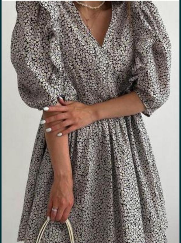 Шикарна натуральна сукня з рукавом-ліхтариком