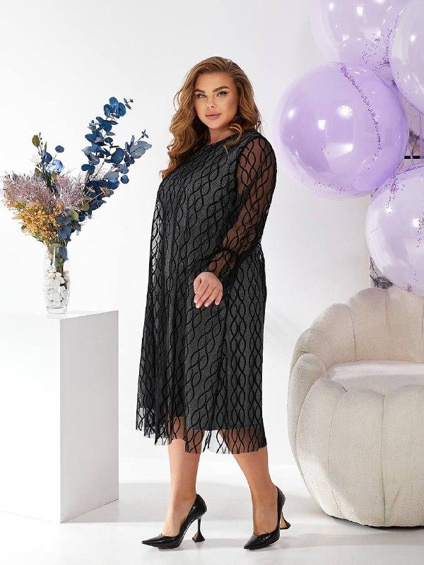 Розмір 52,54,56,58! Тканина: сукні вільного крою люрекс + сітка флок Заміри виробу: 52:ОГ 112 довжина рукава 60 довжина виробу 114 54:ОГ 116 довжина рукава 60 довжина виробу 114 56:ОГ 120 довжина рукава 60 довжина виробу 114 58:ОГ 124 довжина рукава 60 довжина виробу 114 пбр
