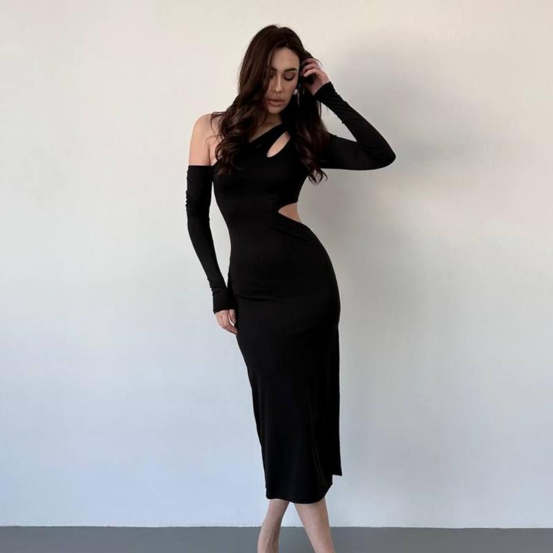 Сукня міді чорна однотонна на довгий приталена з вирізами якісна стильна трендова