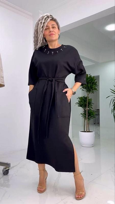 💐Сукня " Вишивка"🌷 Модель: 176 Ціна: 1200 грн 🩷Розмір: 48-52, 54-58, 60-64 🩷Тканина: трикотаж двунитка Колір: чорний, беж Стильна сукня довжини міді з накладними кишенями та розрізом з боку. Оригінальна вишивка по горловині та рукавах, надає виробу ефектності. Трикотаж має розтяжність, довгий ремінь дозволяє експериментувати з образом. 📎Виміри: 🩷 🩷48-52 Обхват грудей 112 см Обхват стегон 116 см Рукав 3/4 Довжина виробу 122 см 🩷54-58 Обхват грудей 120 см Обхват стегон 128 см Рукав 3/4 Довжина виробу 124 см 🩷60-64 Обхват грудей 130 см Обхват стегон 136 см Рукав 3/4 Довжина виробу 126 см оксам