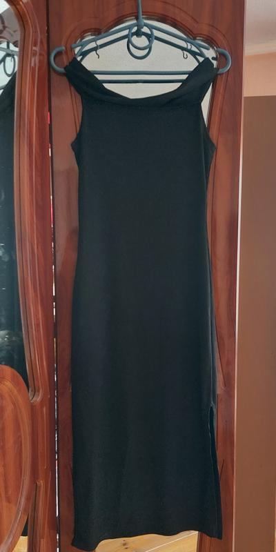 Чорне плаття в рубчик з розрізом на ніжці. Склад тканини 50% котон, 50% полістиролу.