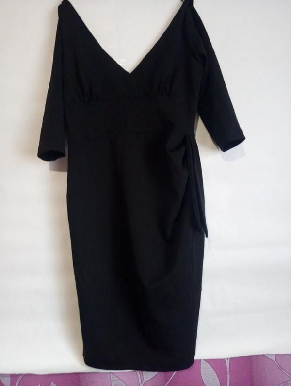 Плаття чорного кольору, розмір вказано.16, підійде Л/XL пог 42см, тянеться рукав 44см поб 52см Довжина 103см Тканина тягнеться додаткові фото та заміри три потребі
