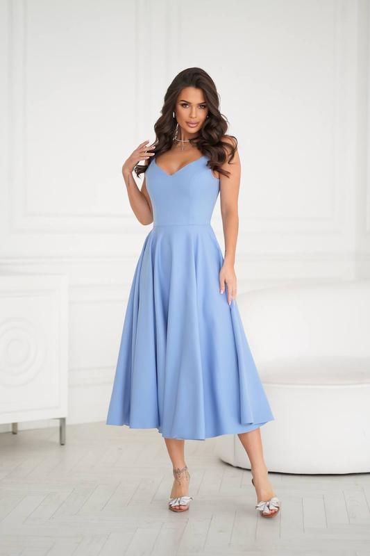 Сукня Размір: S(42), M(44), L(46), Xl(48) Ефектна коктейльна сукня приталеного силуету, спідниця повне сонце, спину підкреслюють подвійні бретелі, довжина міді Колір: чорний, молочний,пудра, зеленый, блакитний Тканина: костюмка Довжина 115 см Ціна: 1040 грн