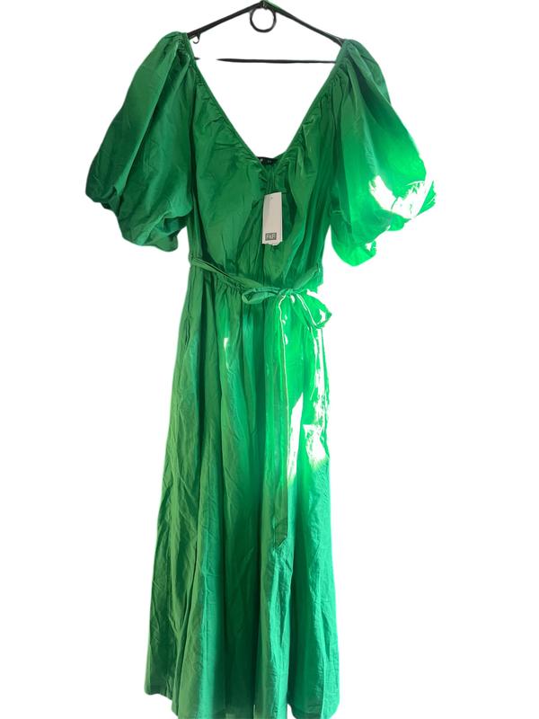 Платье новое , фирма F&F, 100 % коттон . , красивого зеленого цвета , тонкий коттон в швах карманы , талия на резинке , рукава тоже на резинке. Указанный размер UK 16, XL-XXL.