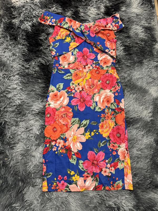 Красива насичена кольорами сукня, в ідеальному стані, гарно переплетена на грудях, позаду застібка, виглядає дорого, розмір С-М 42-44, тягнеться, без дефектів, українського виробництва, без бірок
