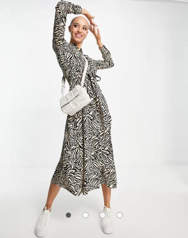 Плаття-сорочка міді бежеве принт зебра stradivarius 100% віскоза