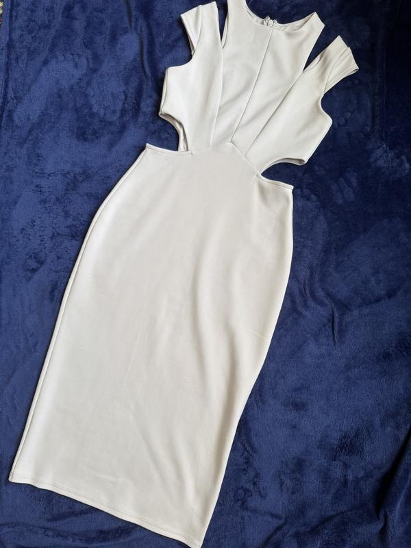 Приталенное платье цвета слоновой кости. Застежка - молния.