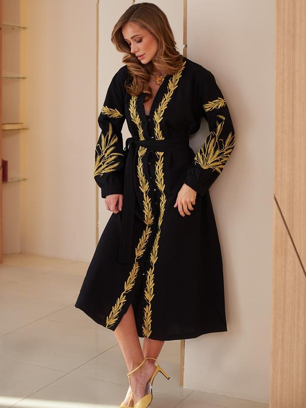 Платье-миди из высококачественного турецкого материала. Изделие свободного кроя, что обеспечит комфорт в носке. Комплектуется пояском из основного материала, что позволит подчеркнуть талию. Спереди и по рукавам декорирована вышивкой. Застегивается на пуговицы. Размеры: 44-46,46-48,48-50 Доставка: 💙 Укрпошта (повна передплата) 💛Новая Почта (полная подписка) ✨Отправка 2-3 рабочие дни 🌿Есть возврат и обмен