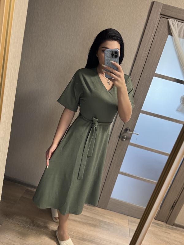 Стильна сукня міді хакі