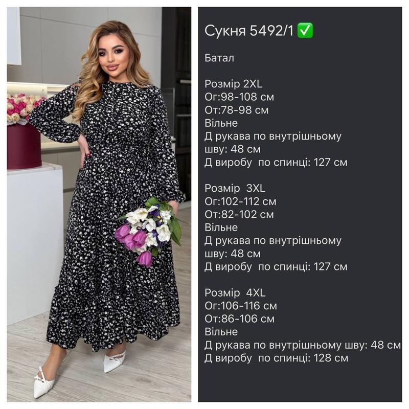 Модель 5492 Жіноча сукня довжини міді Розмірний ряд S,M,L,XL,ХХ,3ХЛ,4ХЛ Тканина софт, дуже якісний та приємний на дотик Талія та рукава гнучка резинка Кольори біло-чорний, червоний, чорний ,блакитний та бежевий У комплекті пояс Сукня у ніжний квітковий принт, можно вдягати під різне взуття та на будь -який випадок Супер якість