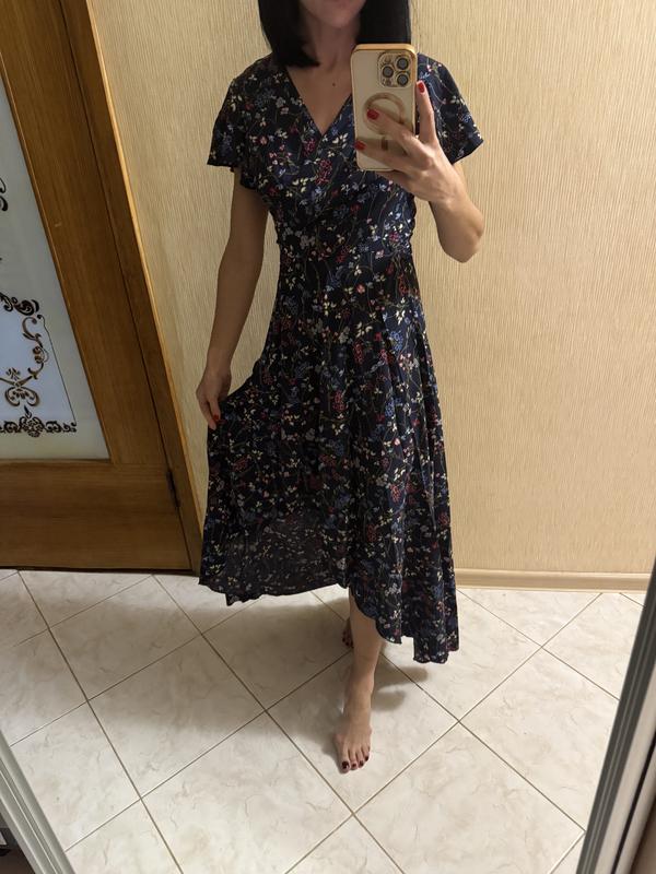 Платье миди в идеальном состоянии. Идет на запах. Очень эффектно смотрится при ходьбе. Интересная модель рукава