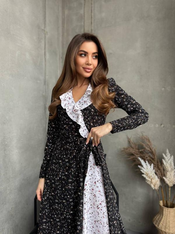Платье с ложным запахом 🥰 Мод: 1465-760 Тканина: софт Размер: 42-44, 46-48 Цвет: черно+ белый Цена - 899 грн 🔥