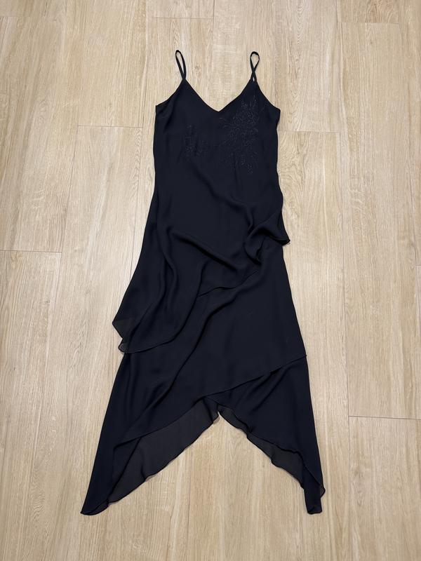 Чорне плаття з асиметричними шарами та квіточкою, розмір S-M ‼️АКЦІЯ‼️1+1=3,1+2=5, 2+2=6! *дешевша одиниця у подарунок! Дотаткову інформацію запитуйте. Умови оплати: -повна передоплата, - ПІСЛЯПЛАТИ НЕМАЄ - Безпечної оплати немає
