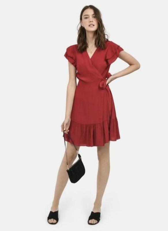 Кркута сукня платье-миди на запах с поясом с рюшами 12 р. красное платье с поясом м