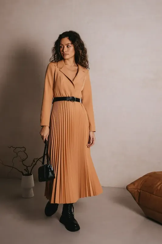 Жіноча сукня міді зі спідницею плісе та відкритим декольте