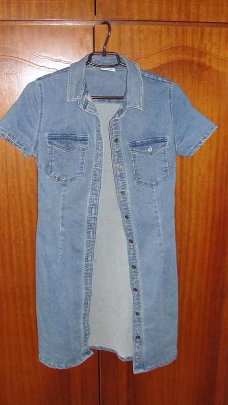 Джинсова сукняна короткий рукав.Склад тканини: 74%- бавовна;26%-поліестер.Заміри: ширина плечей-40 см;ПОГ-44-45;довжина від коміру-88;талія-37 (у нерозтягнутому виді)