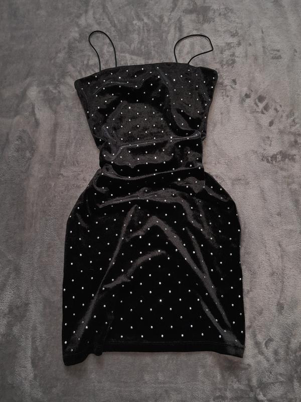 міні сукня велюрова з камінчиками , на тоненьких лямках