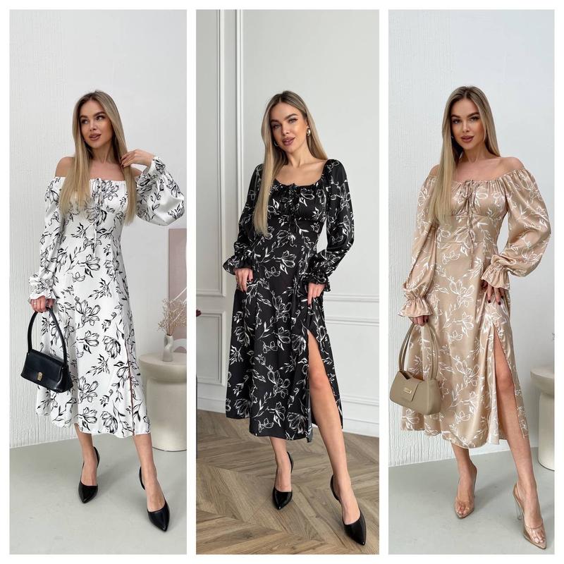 Модель 840 Жіноча сукня Розмірний ряд S,М,L,XL Тканина шовк( дуже якісна та приємна на дотик тканина, не просвічується) Сукня на грудях регулюється завʼязками Дуже гарна модель сукні🥰 Кольори біла основа +чорний; беж; біла основа +чорний Супер якість KF