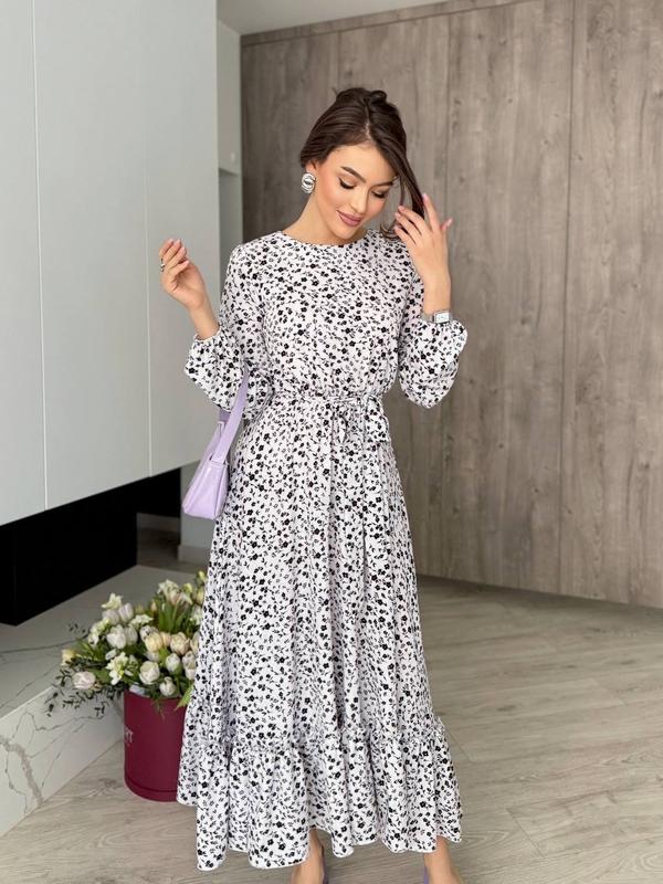 арт. sat. 5492 Размеры: S, M, L, XL, 2XL, 3XL, 4XL Ткань: софт, очень качественный и приятный на ощупь Талия и рукава гибкая резинка Цвета: бело-черный, красный, черный, голубой и бежевый У комплекті пояс. Платье в нежный цветочный принт, можно надевать под разную обувь и на любой случай. Отличное качество!