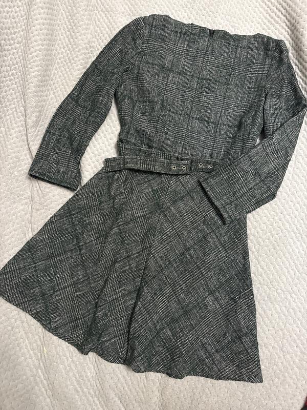 Сукня дуже красивого крою, рукава 3/4, поясок на талії Красиво під високі чоботи Носила не дуже часто, гарно підходила як на кожень день так і якийсь концерт/зустріч. Тканина щільна Полуобхват талії 32см Довжина 80 см