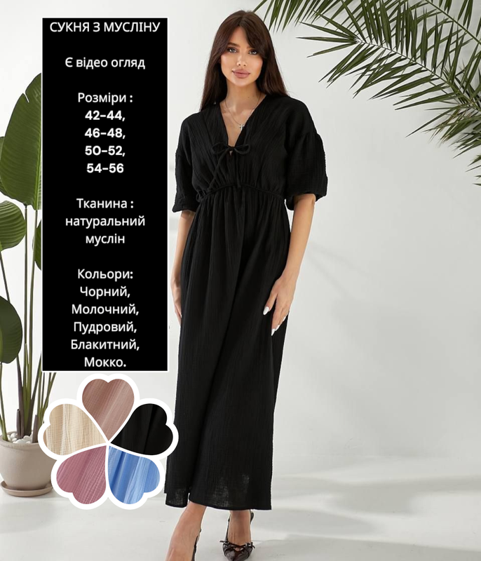 Сукня ✅Модель: 25019 Розміри : 42-44, 46-48, 50-52, 54-56 👗Довжтна сукні міді, рукав 2/3, талія завишена, по бокам кишені. Манжети рукава на резинці Тканина натуральна - муслін 🌈Кольори: чорний,молочний, пудровий, блакитний, моко Розміри: 42-44,46-48,50-52, 54-56 Об’ємгрудей: 114, 122, 130, 138 Обʼєм стегон : вільний Довжина рукава: 52, 43, 44, 45 Довжина виробу : 127, 128, 129, 130 Категорія: Сукня Є відеоогляд Є заміри