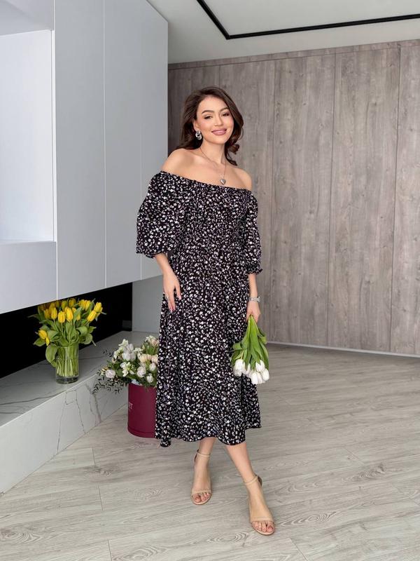 Ваша улюблена модель знову у наявності ❤️ Додали нові кольори 🥰 Ідеальна посадка та крой, підійде під різний тип фігури 🥰 Модель 5382 Жіноча сукня Розмірний ряд S,M,L,XL Тканина софт , приятний на дотик, дуже якісний Колір чорний с дрібною квіткою, білий з чорною квіткою, бежева троянда, біла троянда та чорна троянда Модель дуже стильна, легка, ідеально підійде під різне взуття, зі стильною в цьому році настрочною резинкою по грудях Супер якість Ціна 709 грн