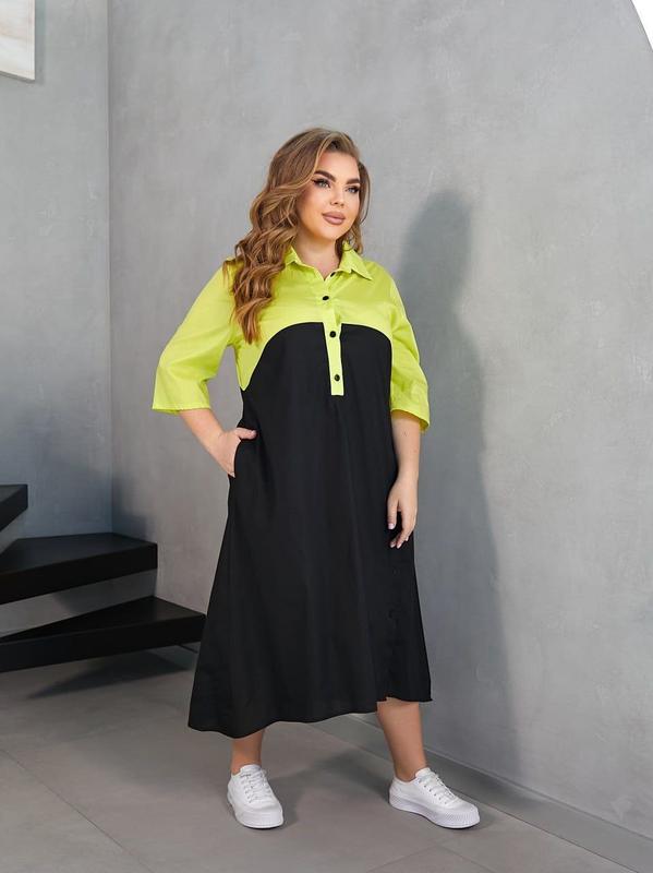 👆👆👆🇺🇦 💙 💛 ❤️ Модель 221 Сукня вишуканого крою, що ідеально поєднує стиль і комфорт. Верх виконаний із класичним коміром та застібкою, створюючи стильний акцент. Чорний низ робить образ елегантним і універсальним, а вільний силует забезпечує максимальну свободу. Відмінний вибір хто цінує моду та зручність! 🔶Тканина:котон 🔺Розміри 50-52;54-56;58-60;62-64 🔥Ціна 1300 грн 📏📏📏📏📏 50-52 Об'єм грудей 108см Об'єм талії 114см Об'єм стегон 124см Довжина по переду 114см Довжина по спинці 124см Довжина рукава +плече 52см Ширина по низу 178см 📏📏📏📏📏 54-56 Об'єм грудей 116см Об'єм талії 122см Об'єм стегон 132см Довжина по переду 115см Довжина по спинці 125см Довжина рукава +плече 53см Ширина по низу 186см 📏📏📏📏📏 58-60 Об'єм грудей 124см Об'єм талії 130см Об'єм стегон 140см Довжина по переду 116см Довжина по спинці 126см Довжина рукава +плече 54 см Ширина по низу 194см 📏📏📏📏📏 62-64 Об'єм грудей 132 Об'єм талії 138см Об'єм стегон 148см Довжина по переду 117см Довжина по спинці 127см Довжина рукава +плече 55см Ширина по низу 202см