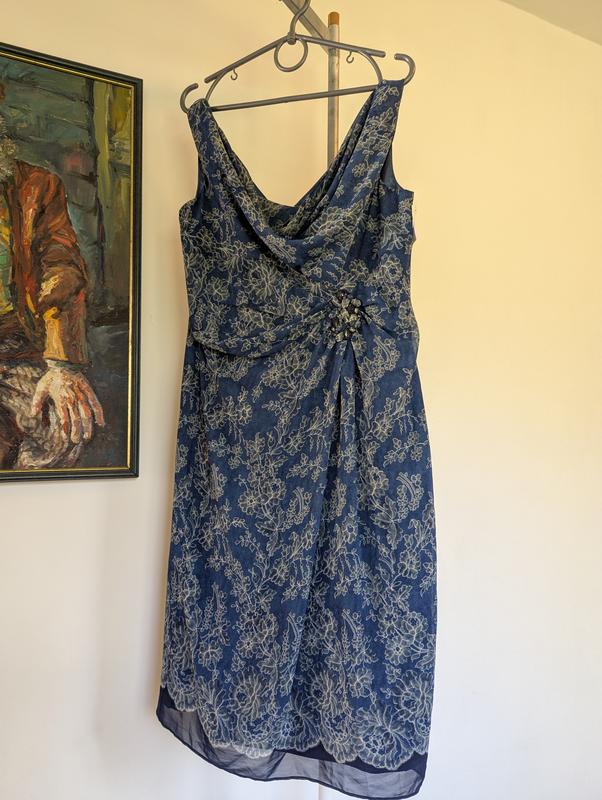 Платье женственного кроя с декорацией в виде броши. Насыщенный синий цвет, очень красиво оформлены оборки на груди, чтобы они держат форму запазухой есть комочков. Шикарная шелковистая откладка. Очень стильная вещь для вечернего выхода