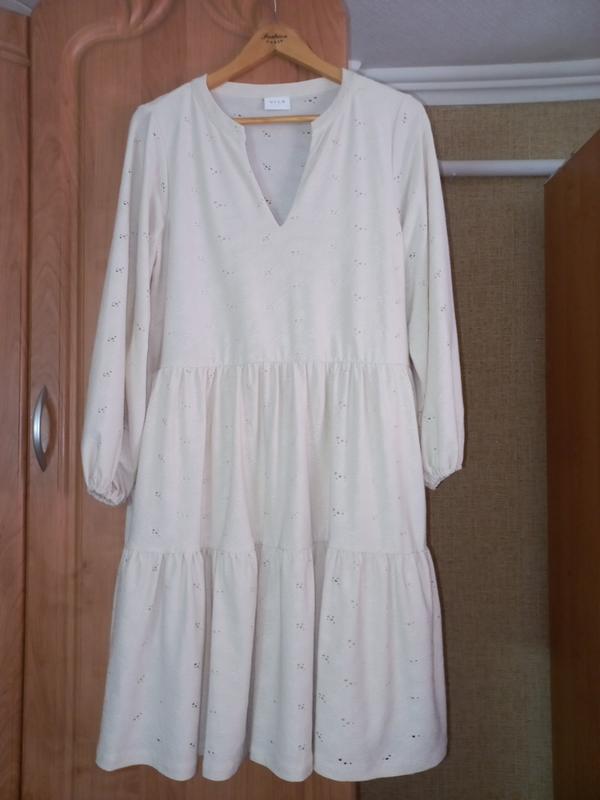 Чудова сукня,світло бежевого кольру.Розмір Л.Від пояса є підкладка.Стан ідеальний.Дв 98,пог 49,плечі 38,др 58.Довжина до талії 42.