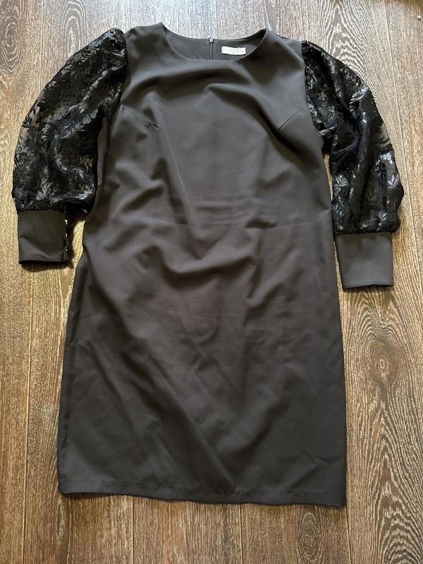 Святкове плаття з гарними рукавами. Ног— 56, стегна—58, низ—56 см. Довжина від плеча—100