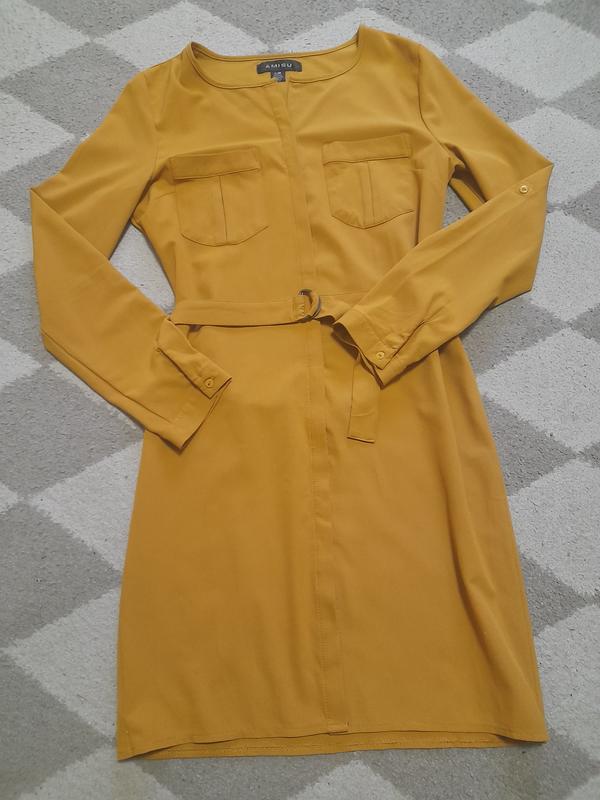 Сукня сорочка по фігурі amisu. сукня в приемному гірчичному кольорі, з паском.