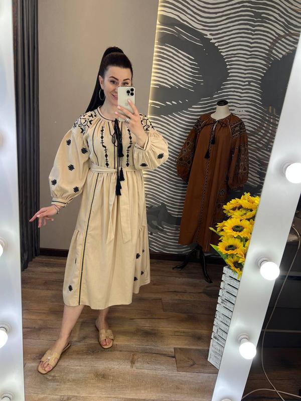 неймовірно гарна сукня - вишиванка з першої хвилини потрапляє до наших сердець і гардеробів, вона виготовлена зі штучного льону високої якості, декорованого надзвичайно яскравою та насиченою вишивкою сукня прямого крою з круглим горлом, витонченим розрізом на грудях зі шнурочками-зав'язками на комірі, ефектними пишними рукавами на манжетах із гудзичками, зручним поясом у комплекті , відрізною талією, цікавими защипами спереду і трохи нижче з боків сукня вигідно виглядатиме на дівчатах з різними типами фігур, створить гарний настрій і займе гідне місце у вашому гардеробі розмір 44-48 довжина 118 см, об'єм грудей по виробу 100 см, довжина рукава від шиї 66 см код 88132 арт.да085