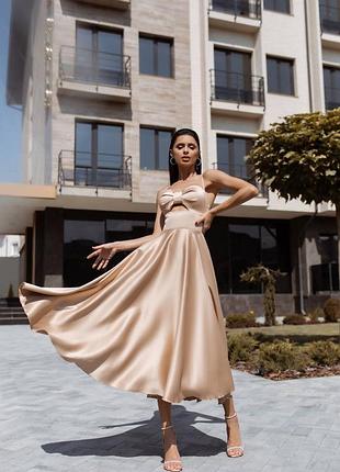Вау-ефект гарантовано! Ця максі сукня створена, щоб закохувати з першого погляду. Легкий королівський атлас струмує при кожному русі, а витончений виріз під грудьми додає ніжності та шарму. ▫️ Ліф із драпіруванням і декоративним бантом ▫️ Акуратний виріз під грудьми — делікатний акцент ▫️ Вшиті пуш-ап чашки для ідеальної посадки ▫️ Широка міді-спідниця створює силует «принцеси» ▫️ Регульовані бретелі та прихована блискавка Ідеальний вибір для випускного, весілля подруги, вечірки чи фотосесії! Розміри: XS (під замовлення), S, M L (під замовлення, +200 грн) Ціна: 2040 грн Арт.: ber