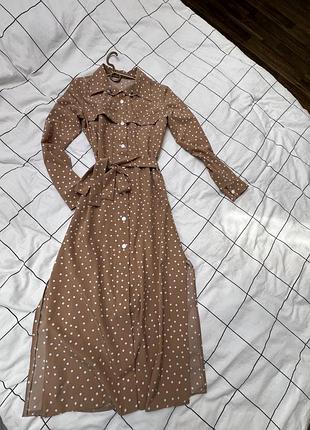 Сукня міді , легка , з розрізами по боках , на тканинному поясі , на кнопках