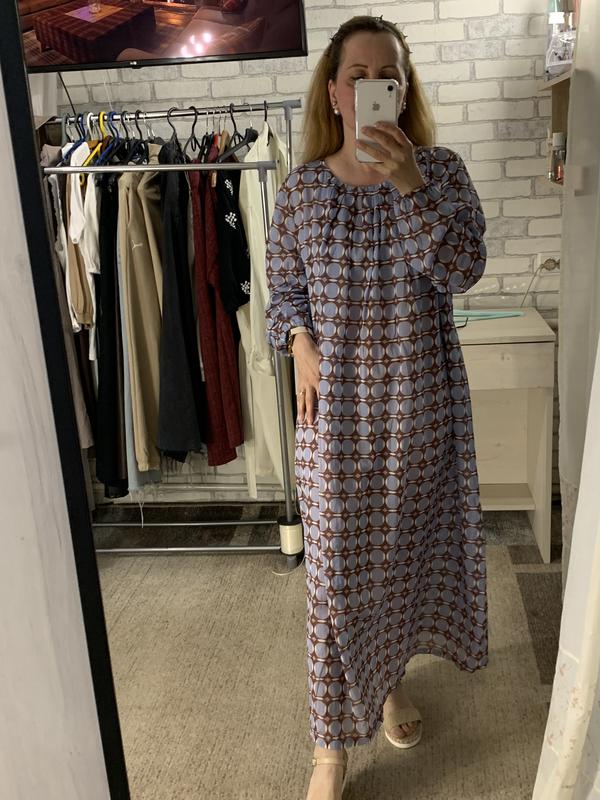 Легенька сукня в новому стані, невагома тканина на літо, не відчувається на тілі! Просвічує, треба підкладку! Була якась завʼязка спереду, можна носити і без неї. Є дві кишені в бокових швах. Розмір приблизно XL Плечі 42, по грудях 60, стегна 70, рукав 58, довжина 121 см