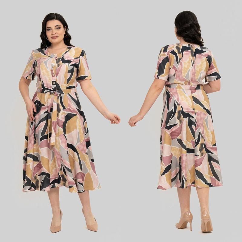 Платье Анита. 400 Цвет: абстракция Тип тканини: льон бохо Состав: вискоза 60%, лен 20%, нейлон 20% Размеры: 56, 58, 60